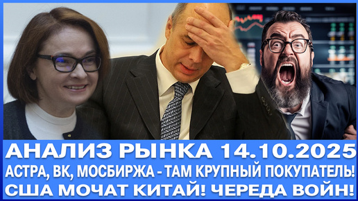 Анализ рынка 14.10.2025 / Астра, Вк, Мосбиржа / Сша мочат Китай! / Реверсный хедж по золоту, валютам! Свечной шип по Ммвб почти закрыли...