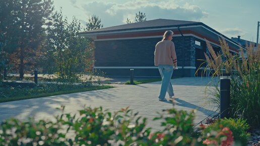 Ландшафтный дизайн участка 50 соток, дома в стиле Райта и садовых дорожек с плиткой завода Поревит