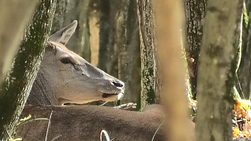 Оленуха отдыхает, утомлённая гоном (благородные олени)