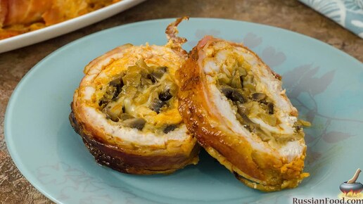 Как вкусно запечь куриное филе? Куриный рулет с грибами и беконом