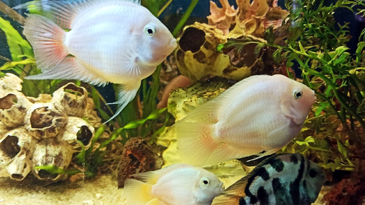 Подросли гибриды черноволосой цихлазомы и сапфирового попугая 14/10/25 Переселяю к платиновым попугаям