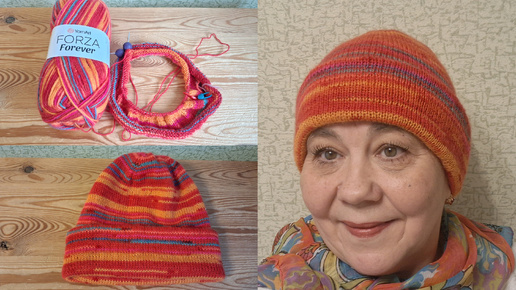 "Шапку надень"!Продолжаю вязать спицами двойные шапки.14.10.25год.