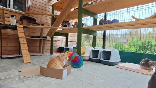 5 минут спасённых котиков проводят время с катио, который я для них построила