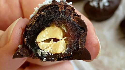 Приготовьте домашние шоколадные конфеты с начинкой из фиников и лесного ореха самостоятельно.