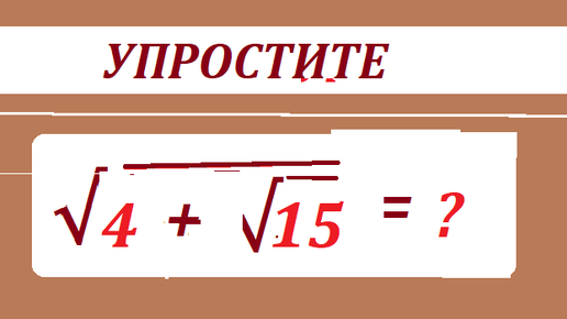 Упростите выражение с ДВУМЯ радикалами: √(4 + √15)