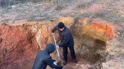 Олег и Максим с утра пораньше они добывают глину, из которой позже Денис сложил новую печь !