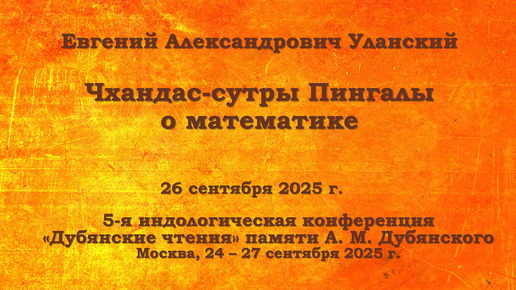 Конференции. 5-е Дубянские чтения. Чхандас-сутры Пингалы о математике. Е. А. Уланский