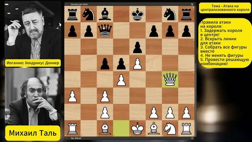 Михаил Таль атакует централизованного короля! Играет 8-ой чемпион мира. Шахматы