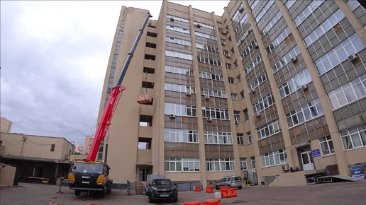 На 7й этаж, 4 ящика за 2 дня.#беларусь #минкс #такелаж #работа #станки #окно #кран