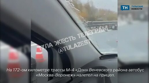 На трассе в Веневском районе пассажирский автобус налетел на прицеп