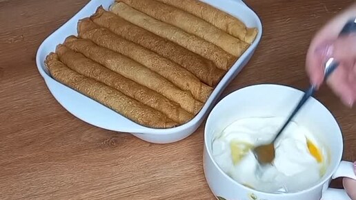 Запечённые блины с творогом в сметанном соусе в духовке...🥞🥰 #блины #закускаизблинов #пирогизблинов #блинчики #вкусныеблины