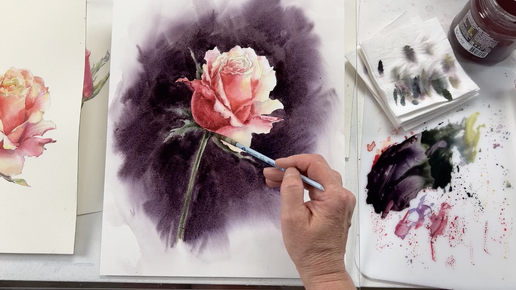 Как сушить и хранить акварельные работы. Рисуем розу на темном фоне. Художник Лилия Бето