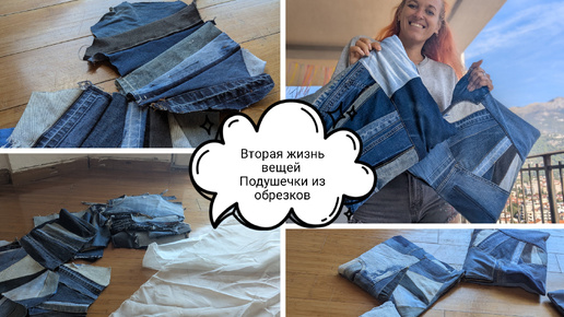 Вторая жизнь вещей 🪡 Подушки из ничего | Джинсовый пэчворк и апсайклинг без отходов