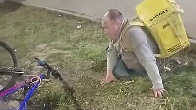Доставщик перебрал с алкоголем и не смог забраться на велосипед! Парни - КРАСАВЦЫ, не бросили мужика в беде!