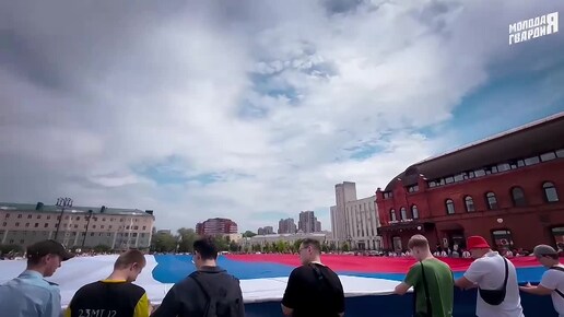 В Пензе молодогвардейцы растянули российский триколор площадью 3750 квадратных метров
