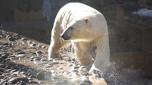 Мороз крепчает, а медвежата Белка и Стрелка радостно плавают в воде!