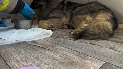 Попытки накормить Басю - собаку со сломанным позвоночником.