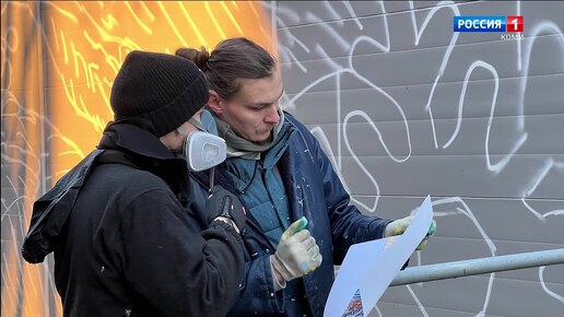 Уличный художник Миша Most создаёт мурал на одном из сооружений Сыктывкара