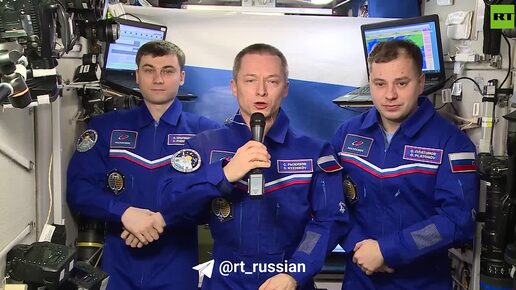 Космонавты Сергей Рыжиков, Алексей Зубрицкий и Олег Платонов с орбиты поздравили RT с 20-летием