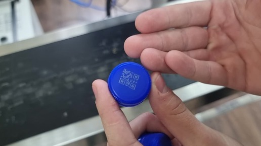 Безопасная маркировка кодов Честный ЗНАК на крышках для воды с помощью лазерного маркера G-MARK. Безвредная замена наклеек