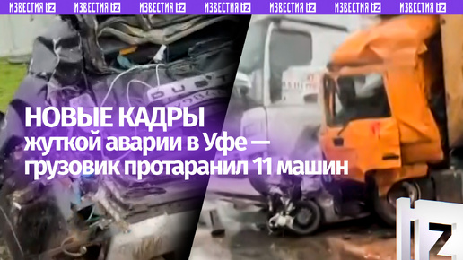 Новые кадры момента страшного ДТП в Уфе, где грузовик протаранил 11 машин