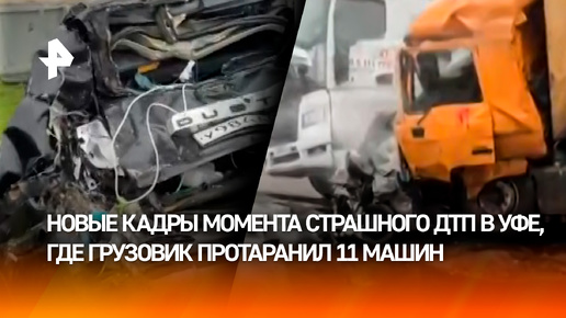 Новые кадры жуткой аварии в Уфе — грузовик протаранил 11 машин