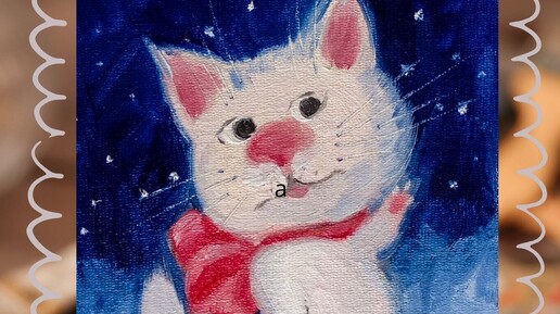 Пишу маслом "Котик с бантом"