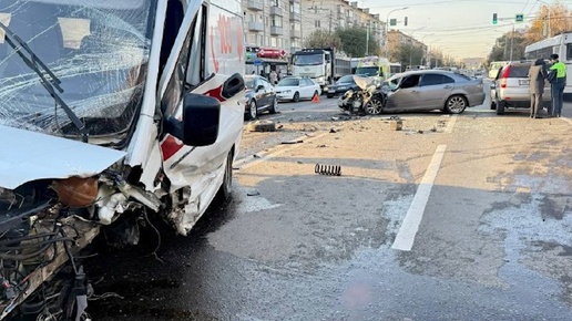 На улице Высотная автомобиль скорой помощи столкнулся с легковушкой