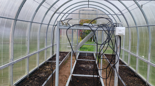 Греющий кабель на грядку в теплицу, почва после мульчи и опилок с соломой