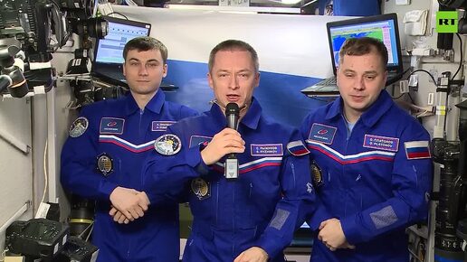 ПРИВЕТ ТЕЛЕКАНАЛУ С МКС КОСМОНАВТЫ «РОСКОСМОСА» ПОЗДРАВИЛИ RT С 20-ЛЕТИЕМ.