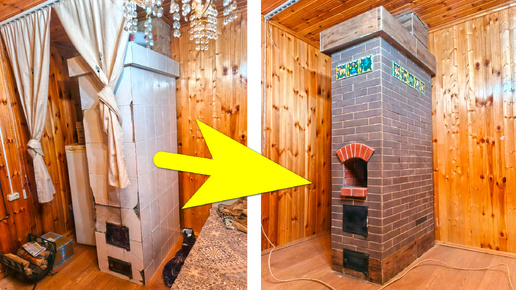✅ Ремонт и реставрация старой печи, отделка клинкерной плиткой под кирпич и изразцами