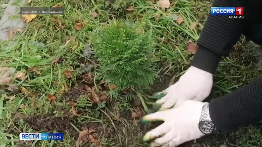 На улице Иристонской высадили саженцы туи сорта "Смарагд"