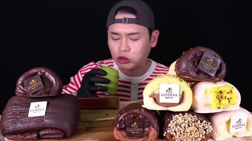 ASMR: Шоколадные десерты GODIVA — фисташковый, тёмный, белый и матча-шоколад! Сладкие булочки и кукурузные кремовые хлебцы. GODIVA Chocolat