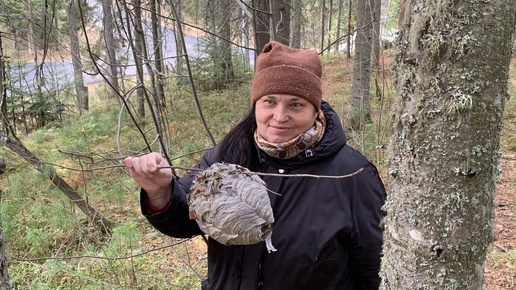 18 октября 2025 в лесу с сестрой, ветки для декора, осиное гнездо, завозят снег.🌲🌲🌲🌞❄️❄️❄️ #хантымансийск