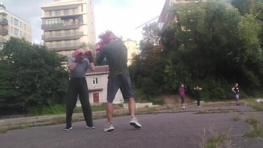 Два прямых левой в голову: ответ правый прямой, защита шаг назад
