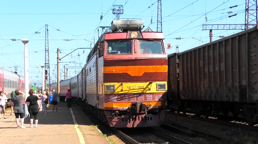 ЧС4Т-399 со скорым поездом Москва — Чита прибывает на станцию Балезино