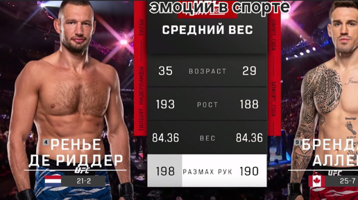 Ренье Де Риддер - Брендан Аллен, полное видео боя на турнире UFC Vancouver