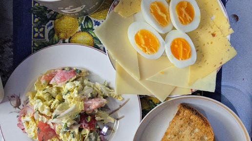 Мукбанг ☕️ Салатик и бутерброд с яйцом 🥚 Рубрика Готовим вместе 👩🍳