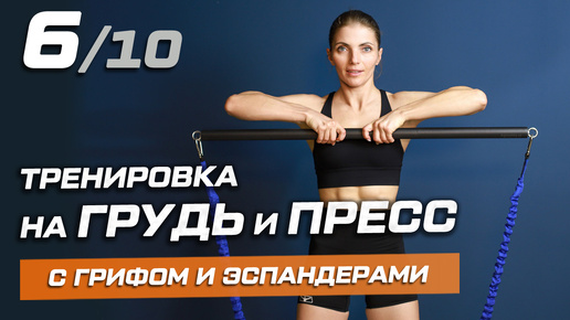 6. Тренировка на грудь и пресс с грифом и трубчатыми эспандерами
