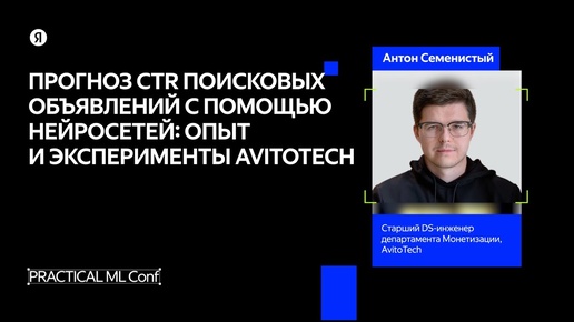 AI-прогноз CTR поисковых объявлений: опыт и эксперименты AvitoTech / Антон Семенистый