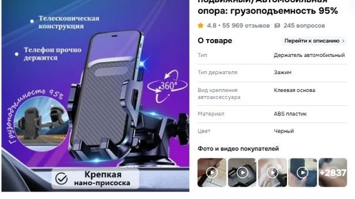 Обзор распаковки посылки Автомобильный держатель для телефона, З способа крепления черный с ozon Доставка Почта России.