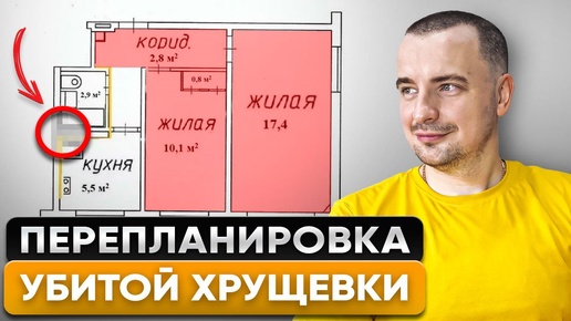Перепланировка УБИТОЙ ХРУЩЕВКИ - Большая кухня и гардеробная!
