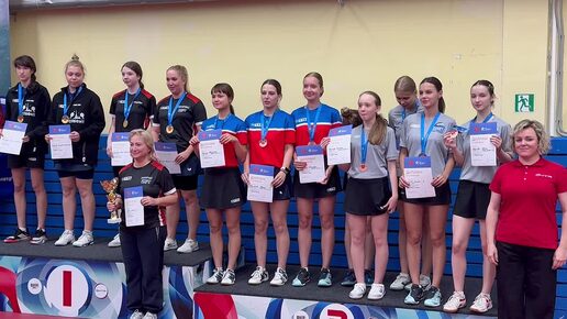 Пьедестал почета Чемпионата Санкт-Петербурга среди женских команд по настольному теннису 2025