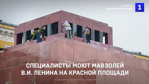 Специалисты моют Мавзолей В.И. Ленина на Красной площади