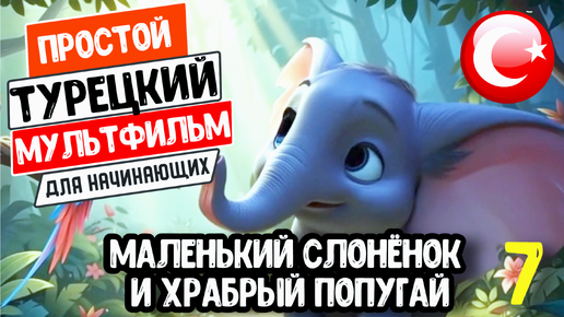 Турецкий язык по простым мультфильмам с переводом и субтитрами. Маленький слонёнок и храбрый попугай