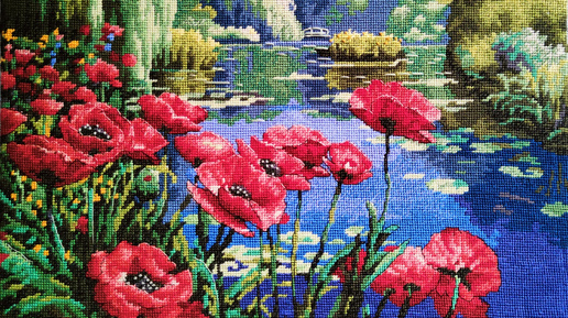 Гобелен "Маки у берега озера" от Dimensions.