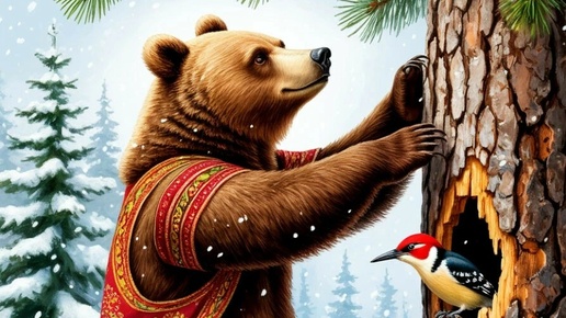 Мультфильм добрая забавная детская песня про медведя "Раз морозною зимой". В помощь родителям и воспитателям.
