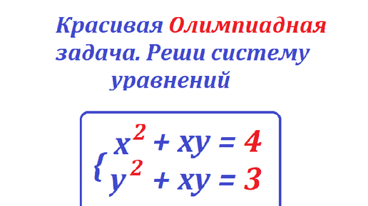 Олимпиадная задача. Решите систему уравнений: x^2 + x * y = 4; y^2 + x * y = 3