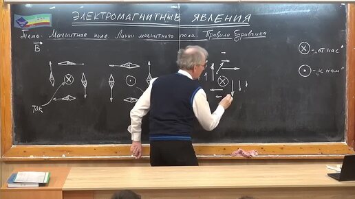 Подробное изображение направления векторов магнитного поля, находящихся на разном расстоянии от проводника