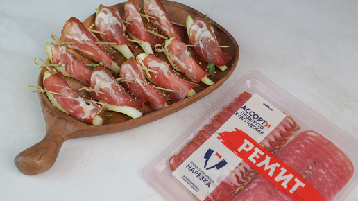 Закуска с грушей, Бургундской колбасой и прошутто